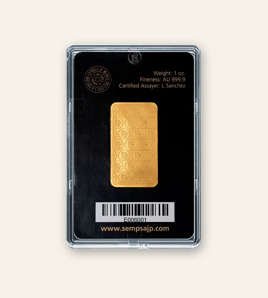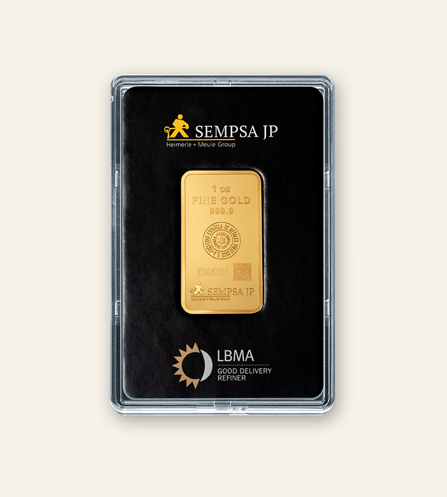 Los lingotes fabricados por SEMPSA JP (Sociedad Española de Metales Preciosos) cuentan con un certificado de autenticidad que avala su pureza, peso y origen. Como una de las refinerías más prestigiosas de Europa, con acreditación LBMA (London Bullion Market Association), SEMPSA garantiza que cada lingote cumple con los estándares internacionales más exigentes del mercado de metales preciosos.