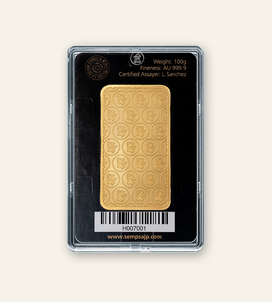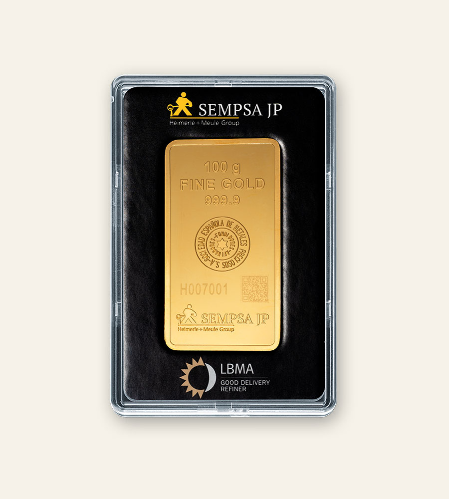 Lingote de ORO de inversión de 100 gr. de SEMPSA