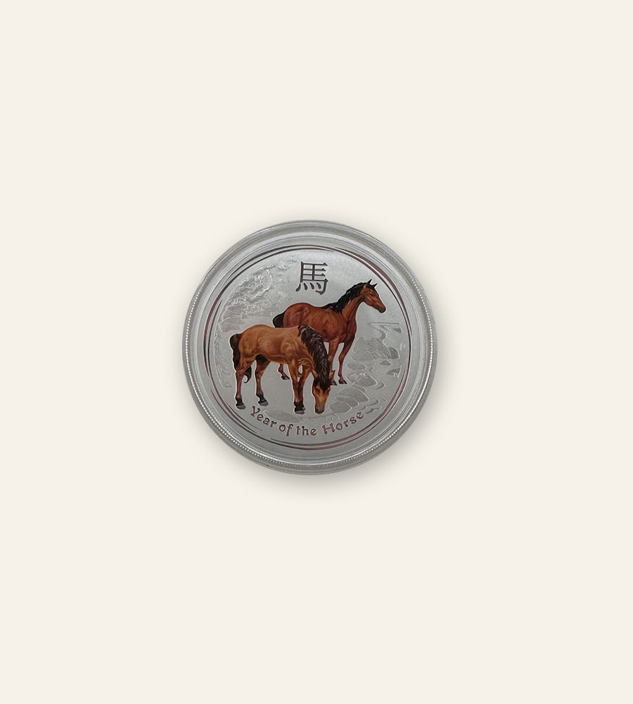 Descubre esta impresionante pieza de inversión y colección perteneciente a la prestigiosa Serie Lunar, acuñada en plata pura .999 y dedicada al Año del Caballo 2014 según el calendario chino.